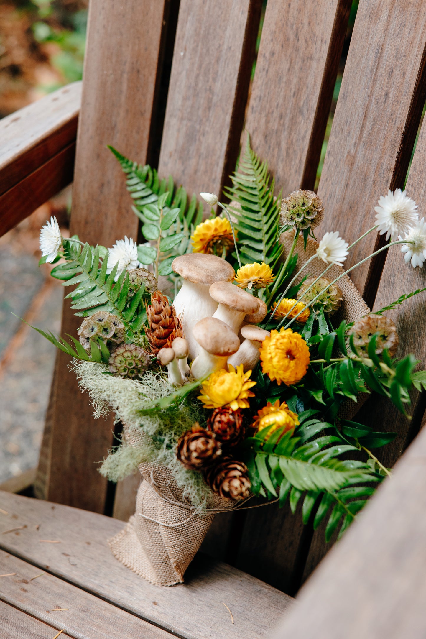 My style is loose and airy and incorporates the "wildflower" perennial blooms I grow here, designer focals such as ranunculus, peonies, roses, hydrangeas, dahlias and lisianthus as well as a wide array of accents and fillers. I love working with a variety of color palettes from spring pastels and summer citrus to the sultry tones of autumn. For those looking for a "woodland wedding" aesthetic, personals and ceremony / reception pieces can be designed with driftwood, bark, moss, lichen, seed pods, ferns, sedum, mushrooms and beautiful, unique foliage.
